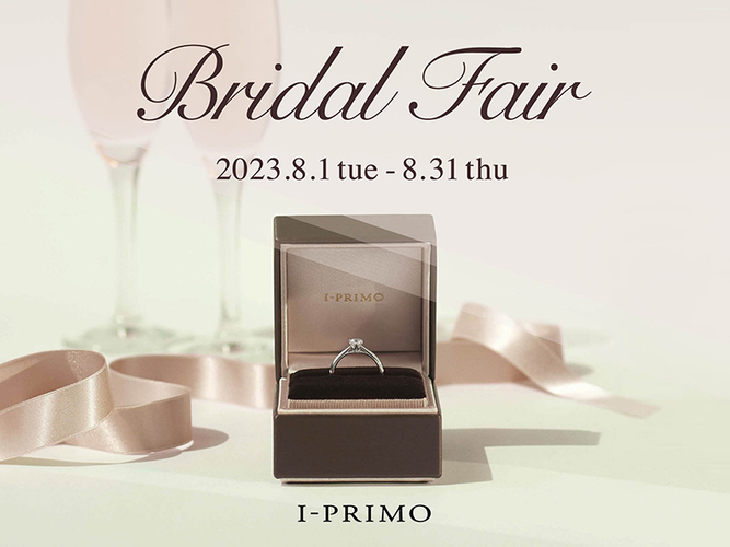 ブライダルジュエリーの企画・販売を行うプリモグローバルホールディングス株式会社が運営するブライダルリング専門店「I-PRIMO(アイプリモ)」では、2023年8月1日(火)~8月31日(木)の期間、『Bridal Fair』を開催いたします。この時期、厳選された特別なダイヤモンドを数多く取り揃え、豊富なデザインバリエーションの中からお選びいただくことができます。またフェア期間中、アイプリモ全店舗及びオンラインストアにてブライダルリングをご購入いただいたお客様に、「撮影用オリジナルシート」をプレゼント。指輪とともに撮影し、婚約や結婚などのおふたりの門出に思い出のお写真を残しませんか。ぜひ、この機会にお近くの店舗にてお気軽にご相談ください。