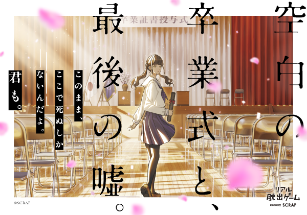 全世界で累計1,490万人以上を動員しているリアル脱出ゲームを企画制作する株式会社SCRAP(本社:東京都渋谷区、代表:加藤隆生)は、ディレクターきださおりによる「青春脱出」シリーズ待望の新作リアル脱出ゲーム『空白の卒業式と、最後の噓。』を、2026年2月19日(木)より東京ミステリーサーカスを皮切りにリアル脱出ゲーム大阪南堀江店、名古屋店で開催いたします。