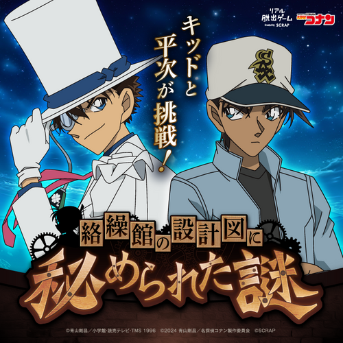 全世界で累計1,090万人以上を動員しているリアル脱出ゲームを企画制作する株式会社SCRAP(本社:東京都渋谷区、代表:加藤隆生)は、劇場版『名探偵コナン 100万ドルの五稜星』のムビチケとコラボした謎解き企画『キッドと平次が挑戦! 絡繰館の設計図に秘められた謎』を実施することを発表いたします。