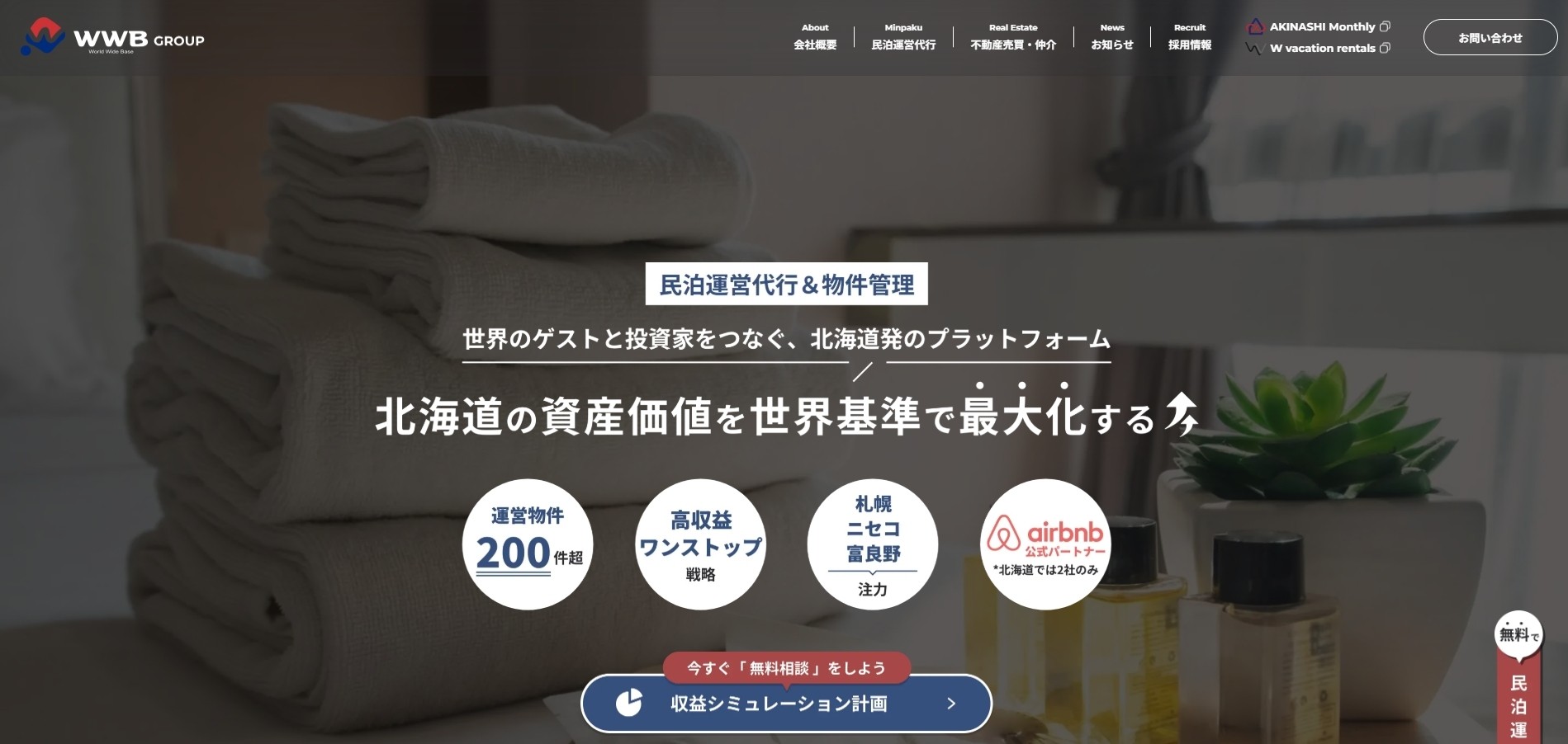 クウカン株式会社(本社:北海道富良野市、代表取締役:山本健太郎)は、このたび、北海道を中心に不動産売買仲介と民泊運営代行を展開する「ワールドワイドベースグループ(株式会社ワールドワイドベース / W vacation株式会社)」のコーポレートサイトの全面リニューアルを実施しました。