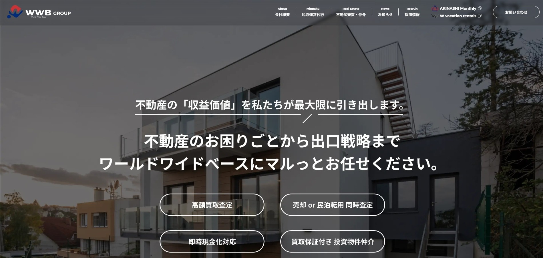 【制作事例】クウカン株式会社、不動産売買から民泊運営まで一気通貫でサポートする「WorldWideBaseグループ」のコーポレートサイトの全面リニューアルを実施
