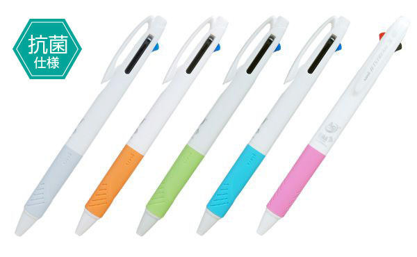 ジェットストリーム抗菌タイプです。軸・グリップ・ノックパーツに至るまで手に触れる部分に銀イオンで抗菌機能がある商品です。