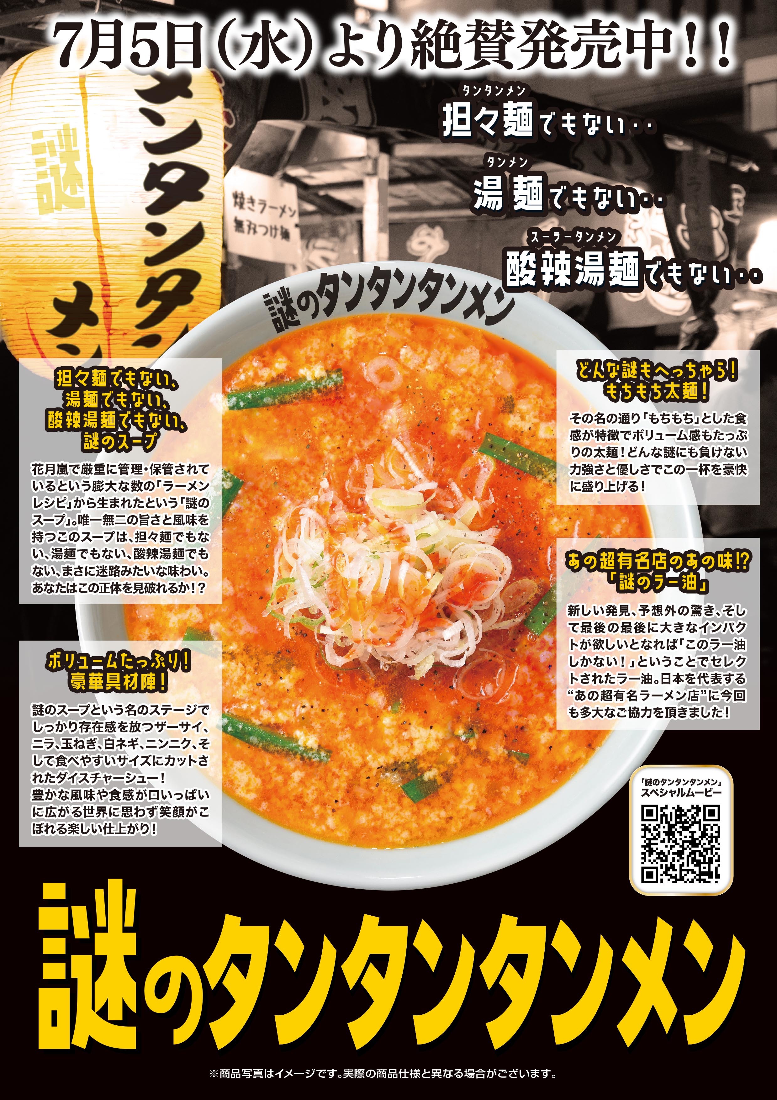 担々麺でもない、湯麺でもない、酸辣湯麺でもない 『謎のタンタンタンメン』 7月5日(水)より期間限定発売!!