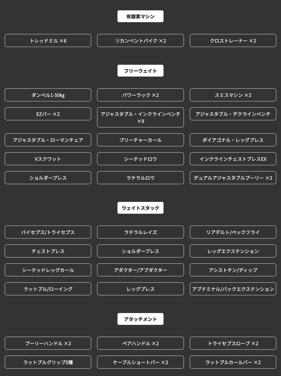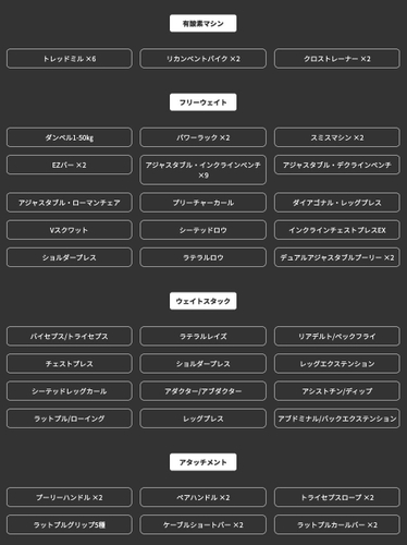**駐車場**:提携駐車場 15台(ジム利用者は2時間無料)