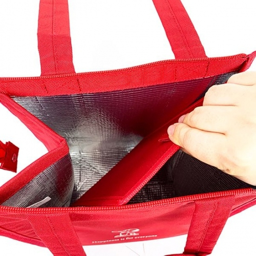 上部にはファスナーがついているので、お弁当箱をちゃんとガードしてくれます。冷気も逃げないので、保冷剤を入れても安心ですね。底の部分まで保冷素材になっています。