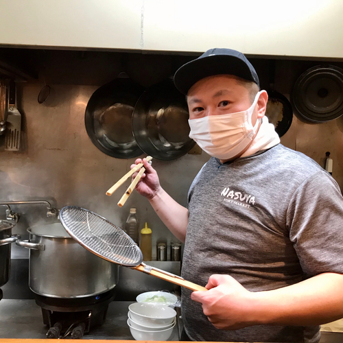 店主は日本料理店や有名豚骨ラーメン店で修行後、実家の食堂「なすや」を引き継ぎました。その後、独立開業準備中に交通事故が原因でリハビリ生活を送ることになりました。自力で動けるまでに回復した後は、午後から夜の時間に仕事をしつつ、夢の途中であった和風ラーメン店の開業に向けて再び動き出しました。