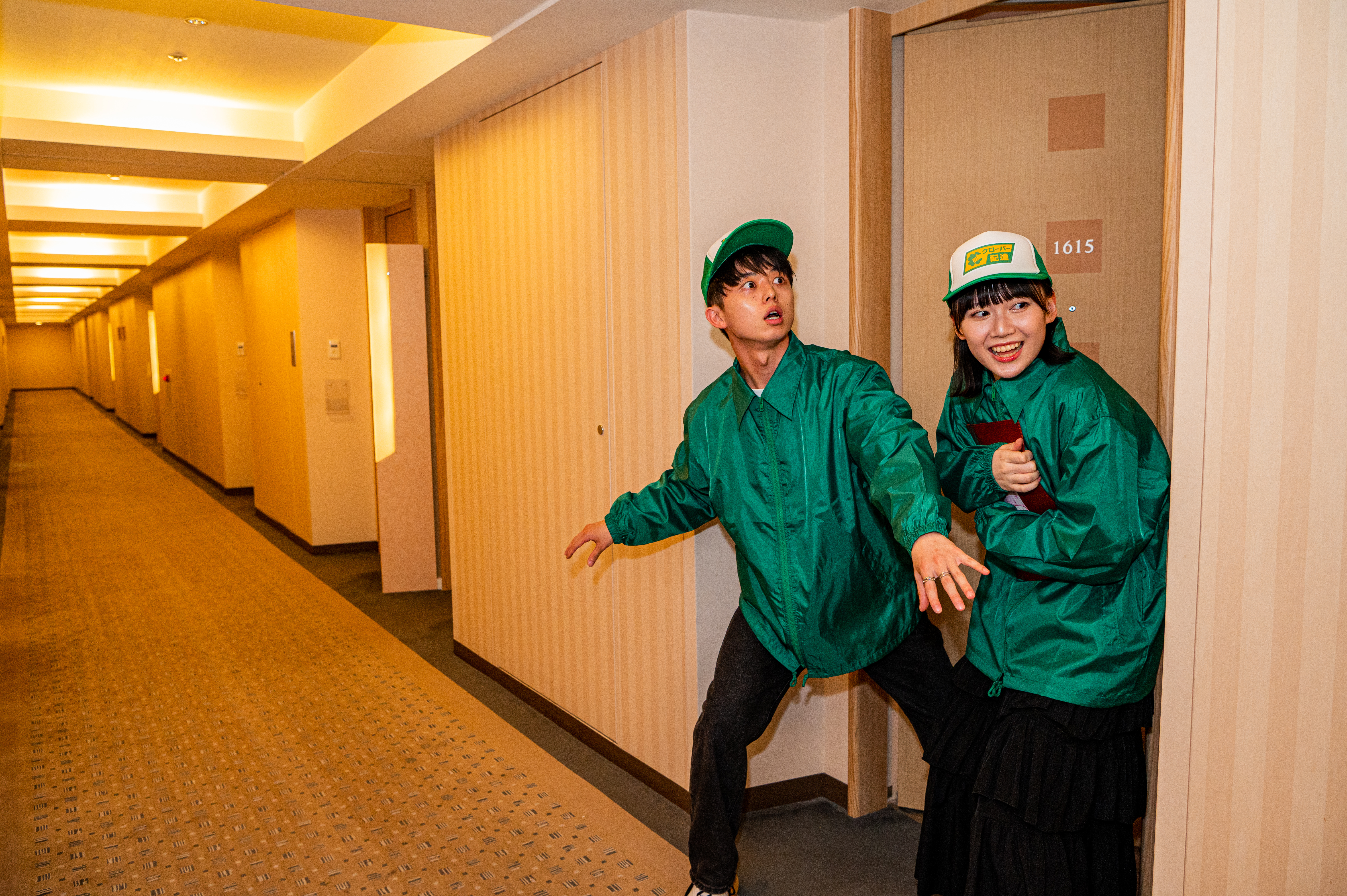 本公演で参加者は怪盗団の一員となり、実際に様々な衣装に着替えて変装します。レストラン従業員風のユニフォームや配達員のジャケット、ストリートファッションなど、客室に用意された衣装やアイテムは多種多様。自身の客室はもちろん、一般のお客様も利用するエントランスやラウンジバーなど営業中のホテル館内を行き来して、時にホテルスタッフと関わりながら謎や暗号を解き明かし、数々の極秘ミッションをこなします。