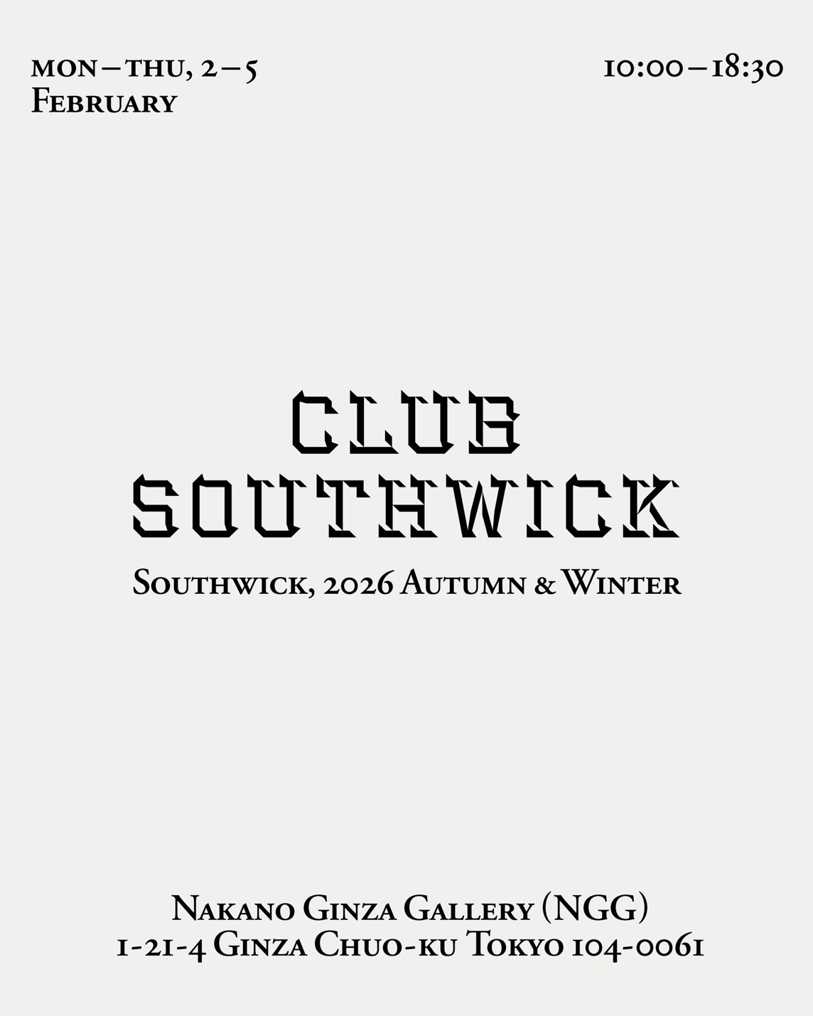 2026年2月2日(月)~5日(木)の期間、2026年秋冬シーズンの展示会を開催いたします。