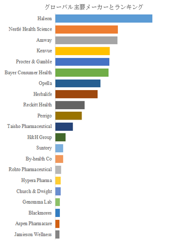 LP Informationのトップ企業研究センターによると、市販薬および栄養補助食品の世界的な主要製造業者には、Haleon、Nestlé Health Science、Amway、Kenvue、Procter & Gamble、Bayer Consumer Health、Herbalife、Opella、Reckitt Health、Perrigoなどが含まれている。2024年、世界のトップ10企業は売上の観点から約16.0%の市場シェアを持っていた。