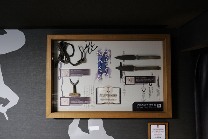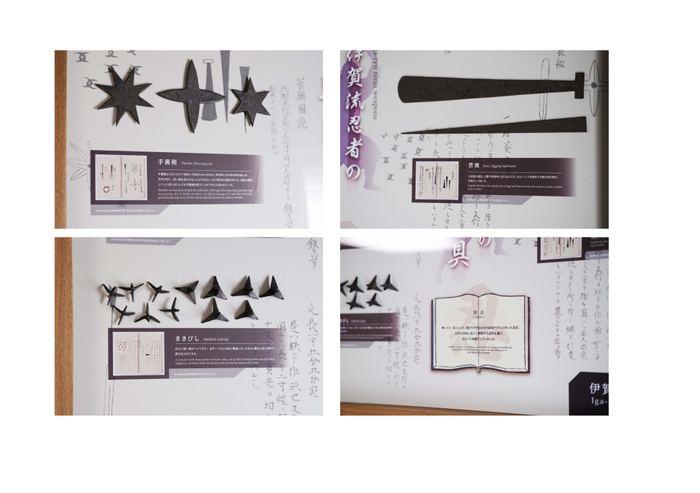 各部屋に異なる伊賀流忍者博物館所蔵の伊賀流忍者に関する忍術文献や忍具のレプリカを、伊賀流忍者博物館監修の認証のもと壁面ショーケースで展示