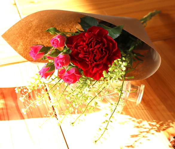 JFCでは「いい夫婦の日」にさりげなく花を添えるアイテムとして、バラと季節のお花を束ねたミニブーケご用意いたしました。「いい夫婦の日」を彩るお花としてはもちろん、気軽にお花を飾りたい時やプレゼントに添えるお花として、ちょっとした手土産にもおすすめのコンパクトサイズのブーケです。