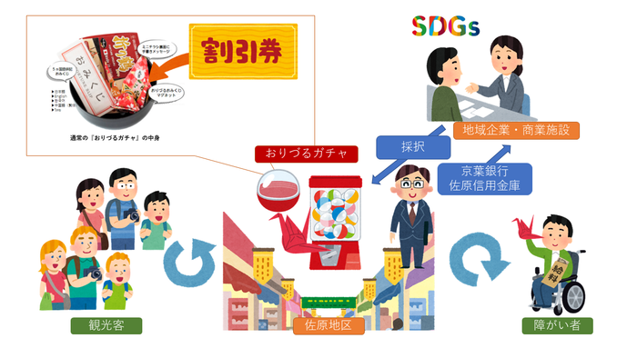 観光の活性化は当法人が事業運営を行う『おりづるガチャ』において障がい者の収入が増えることにつながるため、協賛企業の皆さまと連携をして観光客にとって魅力的な『おりづるガチャ』のプロデユースを行ってまいります。