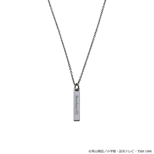 バータイプのネックレスにバーボンのボトルチャームをセット。