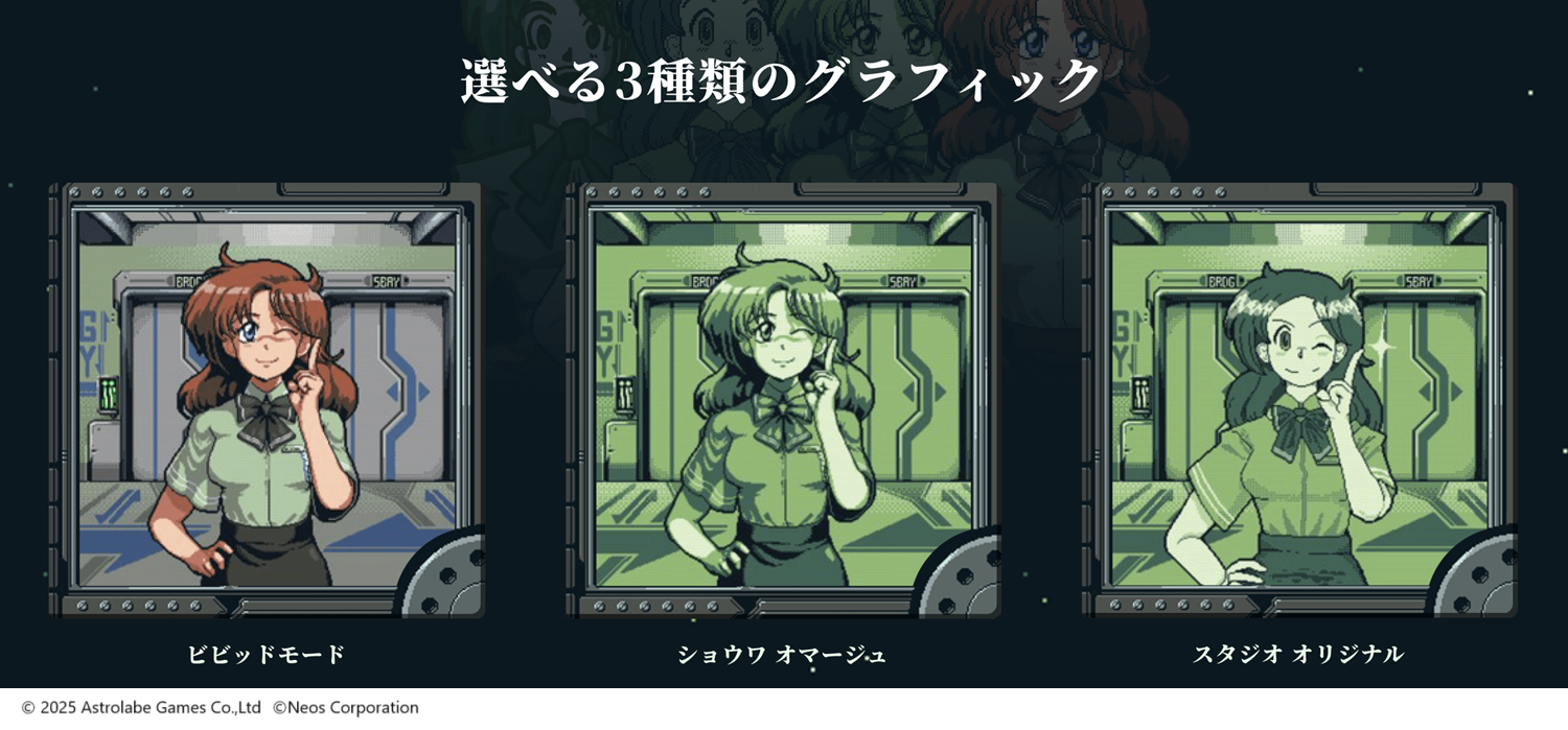 グラフィックは、レトロなピクセルアートスタイルで表現され、「ビビッドモード」「ショウワ オマージュ」「スタジオ オリジナル」の3つのモードから、お好みに応じてビジュアルを切り替えてプレイすることが可能です。
