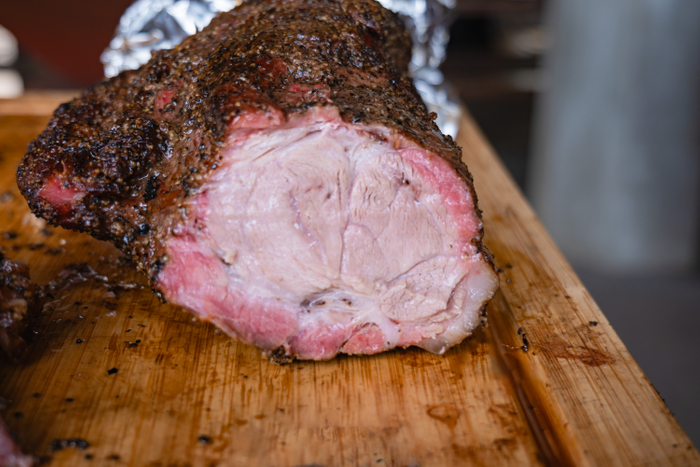 このグリルは再利用可能なドラム缶を使い、スタッフが手づくりで仕上げたものです。地域で調達された薪や桜のウッドを使用し、環境負荷を抑えつつ、じっくりと6時間かけて豚肉をスモーク。シンプルな塩と胡椒で味付けされたチャーシューは、ジューシーで、燻製による美しい縁取りがBBQらしさを引き立てています。