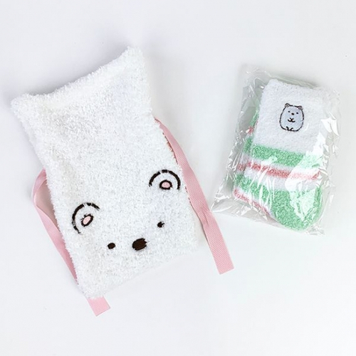 ほっこりキャラで人気のすみっコぐらしから、巾着入りのもこもこ靴下が入荷しました!