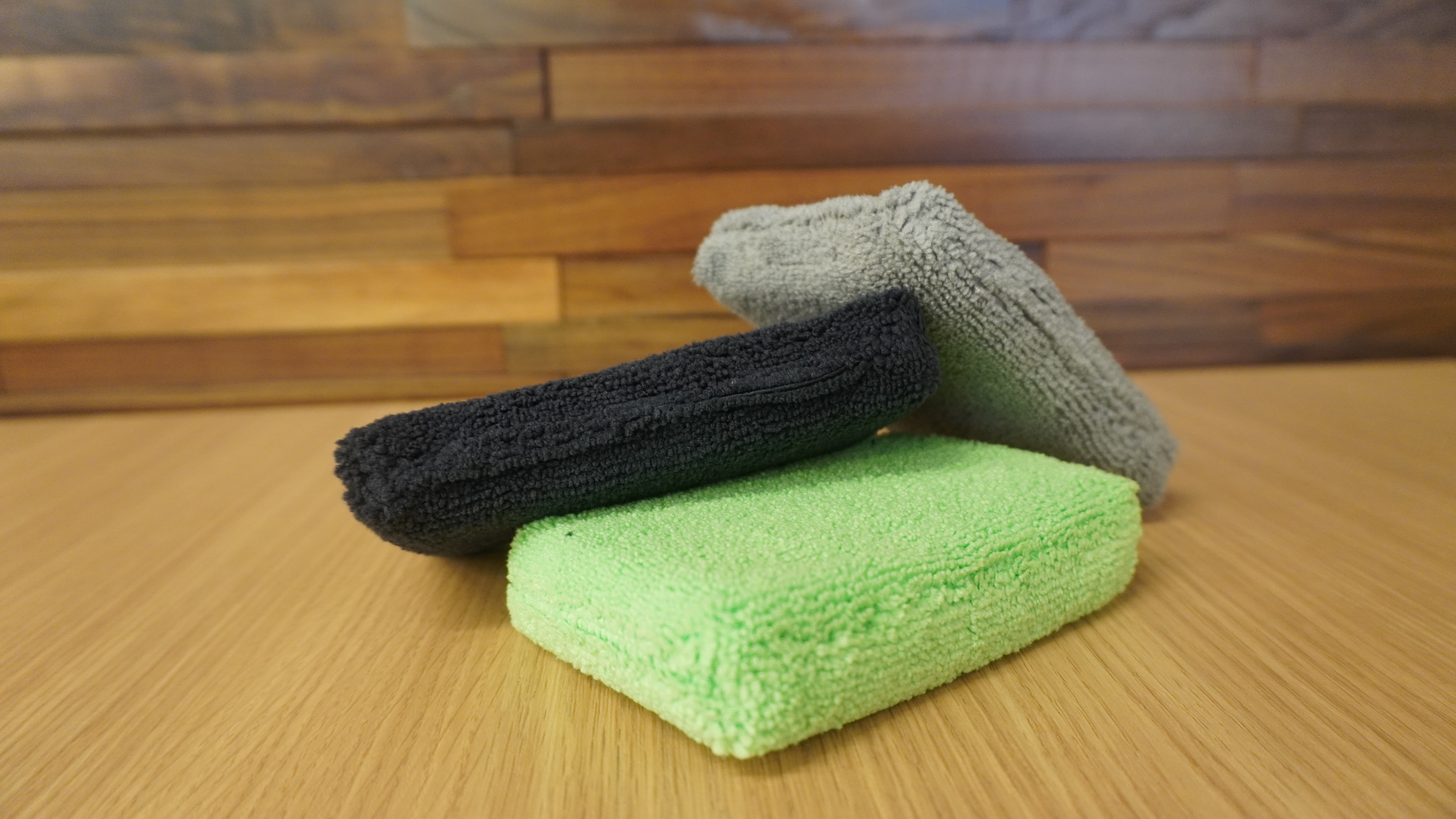手のひらに収まるサイズ感と、マイクロファイバー素材による柔らかなタッチが特長の専用アプリケーター。ワックスやコーティング剤を均一に塗布でき、塗装面にムラを残しません。適度な厚みと弾力で、凹凸のある部位にもフィットしやすく、仕上がり精度を高めます。