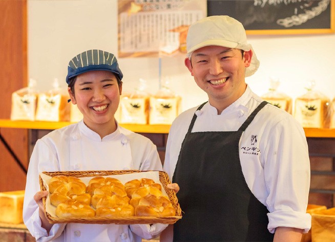 ペンギンベーカリーは、「北海道の大地で育った小麦をつかい、子どもからお年寄りまで毎日食べていただけるパン」をコンセプトに、北海道産小麦の焼き立てパンを提供する北海道のパン屋さんです。
