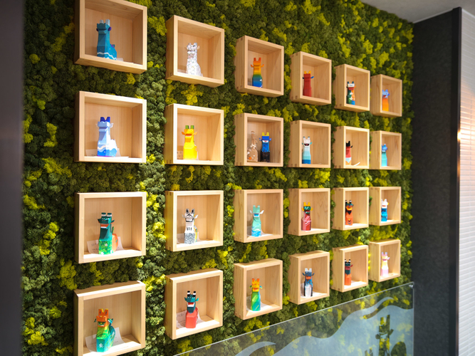 「宇和島への想い」「宇和島の未来」をテーマに地元の高校生たちが想いを込めて色付けした作品でお客様をお出迎えします。