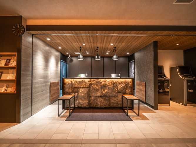 ・フロントには宇和島城の城壁に使われている石材を活用しており、フロント前の廊下は城下町の石畳をイメージしたデザインを施しています。