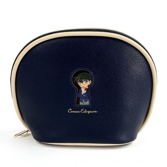 ネイビーのシックな雰囲気に、鍵穴から覗くコナンのデザインの、ポーチです。使いやすいラウンド型で、程よいマチもあります。