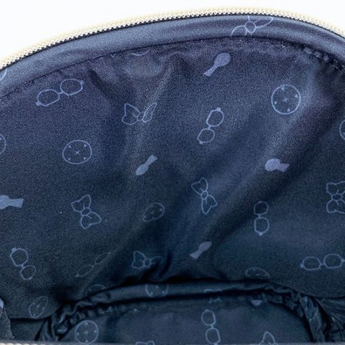 内側は、ネイビーの布地に蝶ネクタイ型変声器などのコナンアイテムの総柄デザインです。
