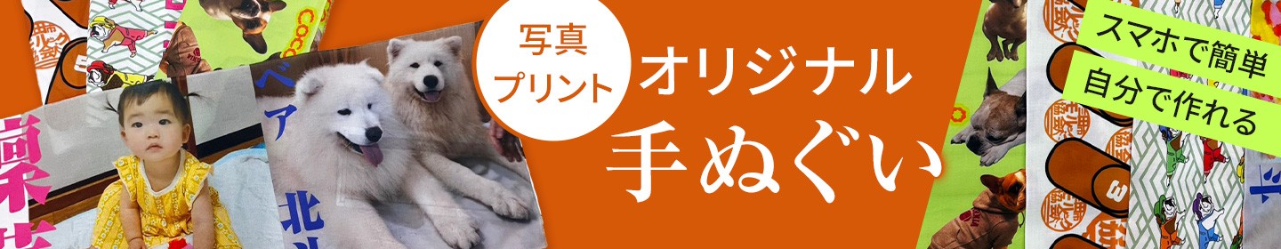 オリジナルデザインを美しく表現できる、写真プリント対応のてぬぐいです。