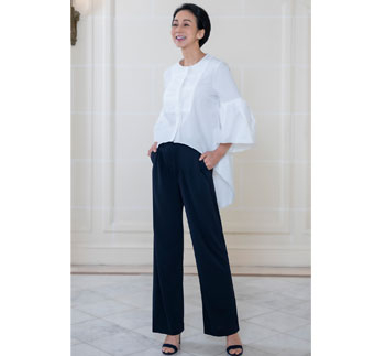 中村江里子さんがいろいろなファッションを経験してきた中で、もっと使いやすく、着ていてわくわくするようなボトムを提案していただきました。
