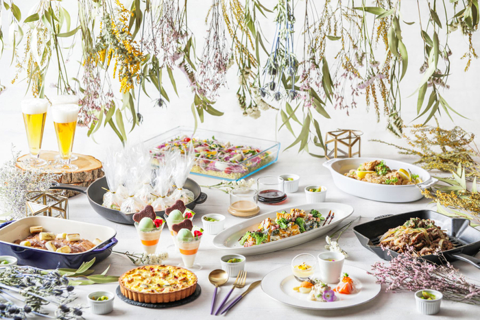 また、組様限定のウッドデッキのテラス席は、華麗に輝く大聖堂を臨むことができる、夜風が心地よい空間に。さらに、室内席のお客様にもホテル自慢のテラスを満喫いただけるよう、テラス内にグリルワゴンを設置。じゃがいものアヒージョ・ソーセージを出来立ての状態でお召し上がりいただけます。生ビールやワイン、カクテルなどが飲み放題のプランと、ノンアルコールドリンク飲み放題プランをご用意しているので、お酒が苦手な方でもお楽しみいただけます。