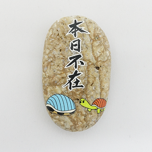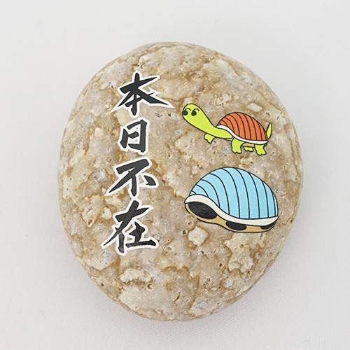 「本日不在」のメッセージと2匹のカメが描かれたオクストンです。リモートワークなど、オフィスに出社しない日のデスクにそっと置いてみてください。何かを探すかのような表情のカメと甲羅にこもったカメのイラストが、同僚や仲間にあなたが不在であることをユーモラスに伝えてくれます。