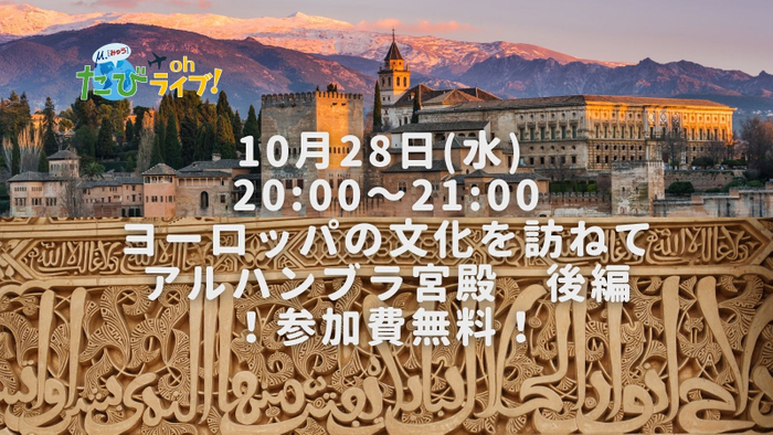 10月28日(水)は、スペイン南部アンダルシア地方の世界遺産・アルハンブラ宮殿を2週にわたってご案内する後編です。