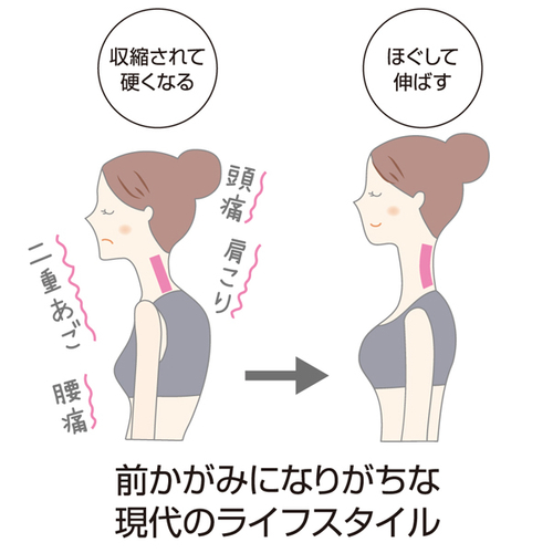 身体の約10%あると言われている頭の重みが頸椎にかかることで首や肩は過度な負担や筋肉の硬直にも繋がります。
