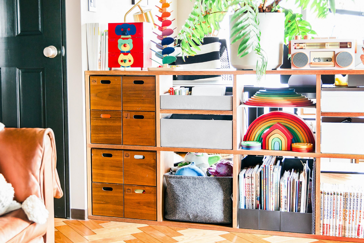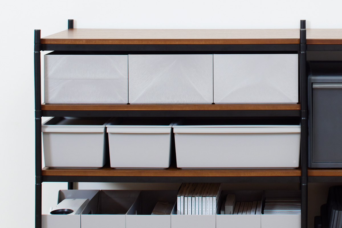 扉がないオープンシェルフの収納に便利