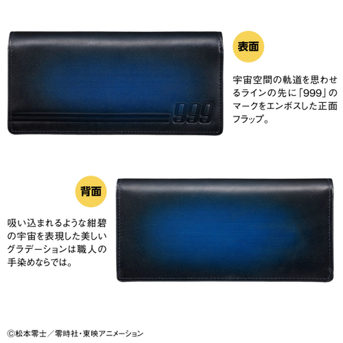 開くたび、憂いを帯びた表情の美しいメーテルが現れる…… 『銀河鉄道999』45周年を記念して 紺碧の宇宙をイメージしたグラデーションレザーの長財布が登場!