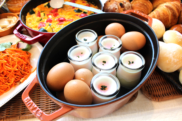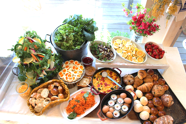 大好評のランチビュッフェが期間限定でモーニングにも登場 焼きたてパンや、たまご専門店のオリジナル日の出たまごを使った メニューなどここでしか味わえない素敵な時間を過ごしませんか?