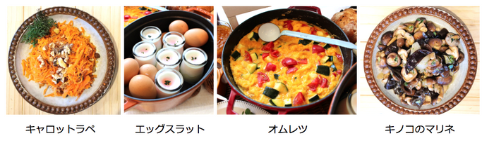 また現在、サラダデリと日替わりパン、スープをセットにしたテイクアウト料理「タマゴヤテイクアウトセット」1,080円(税込)を開始しました。他に「三島箱根ポーク ポークハム&グリル野菜」1,080円(税込)、「美味鶏チキンコンフィ&グリル野菜」1,350円(税込)などを販売しています。