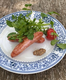 地元丹那のはこぶたを使用したジューシーなソーセージに函南産のクレソンを添えてます。