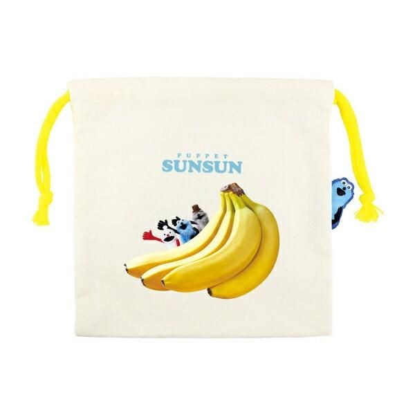 まずは巾着からご紹介。パペットスンスン ぴょこっと巾着 バナナです。サイズ:19.5cm×20cm×0.3cmでちょっとした小物を入れておくのにぴったり。真ん中の美味しそうなバナナに惹かれます!