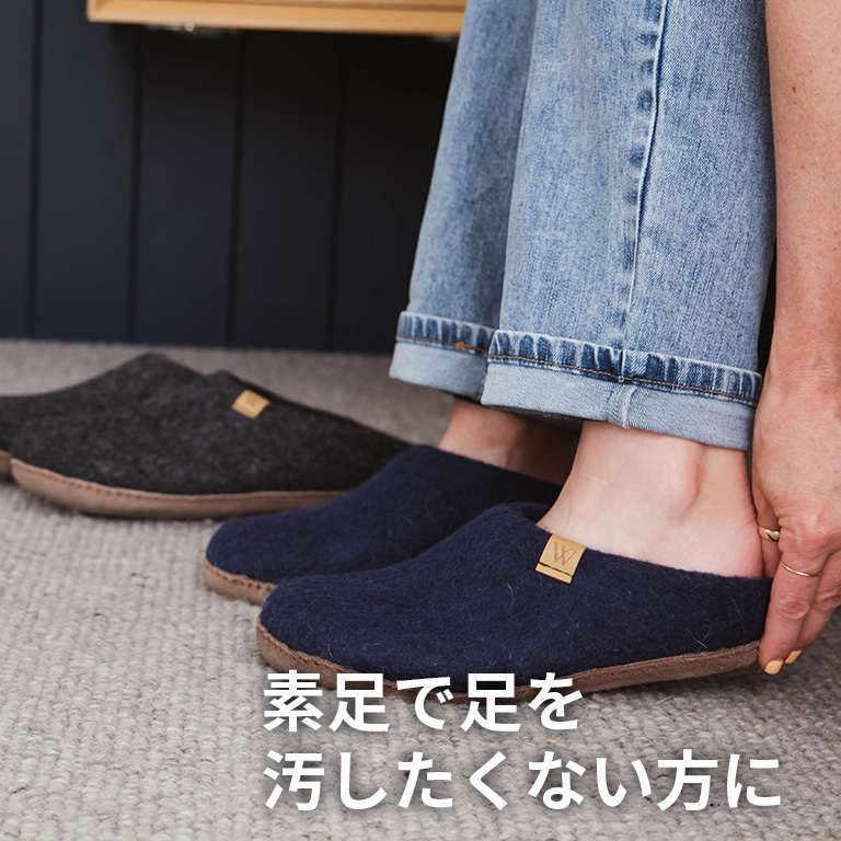 羊の国ニュージーランドの羊毛100%を贅沢に使用したWoolfiのルームシューズは、素足を柔らかく包み込むソフトな肌触りは別格の心地良さ。
