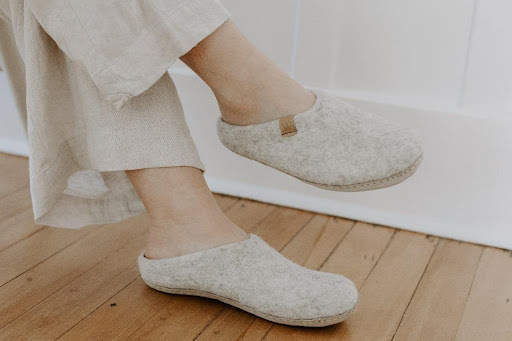 日本初上陸・Woolfiのルームシューズは羊毛の特性を生かし、冬は温かいのに蒸れにくく、夏は通気性も抜群でオールシーズン通して使えます。ネパールの伝統産業のフェルト職人が1足ずつ丁寧に製造し、持続可能でサステナビリティな商品です。ルームシューズ【Suffolk Slip-on】と、ルームシューズまたは軽い外履きに使用できる【Valais Slip-on】の2デザインを用意しました。