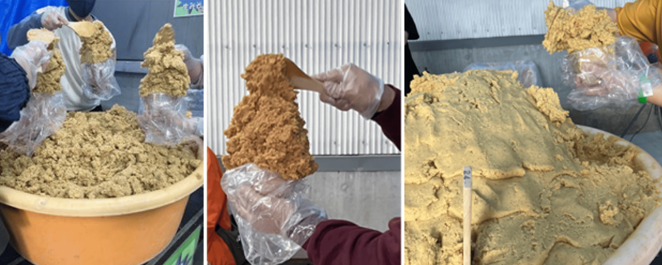 特設会場にて行われる詰め放題では、1回1分間でカップに盛れるだけ味噌を盛っていただきます。