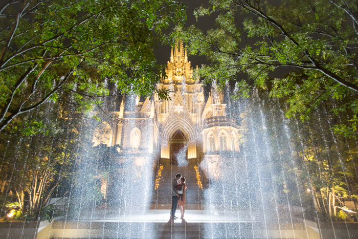 パイプオルガンと女性聖歌隊が奏でる生演奏の中で、「結婚してください」という意味を持つ108本の薔薇の花束でプロポーズしていただけるプラン。チャペルの中に羽根が舞う、幻想的なフェザーシャワーの演出も。
