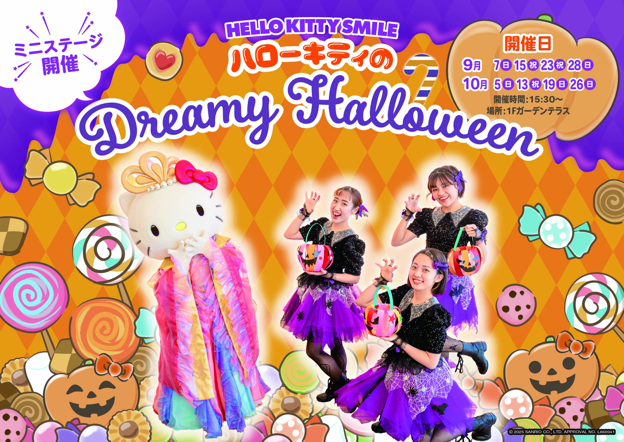 株式会社パソナふるさとインキュベーションが運営する淡路島にあるハローキティの施設、メディアアート&レストラン「HELLO KITTY SMILE」内にあるGARDENテラスでは、ハローキティがHELLO KITTY SMILEのオリジナル楽曲を踊り、今だけのクラフト体験をお楽しみいただけるスペシャルステージ『ハローキティのDreamy Halloween』を9月7日(日)より開催いたします。
