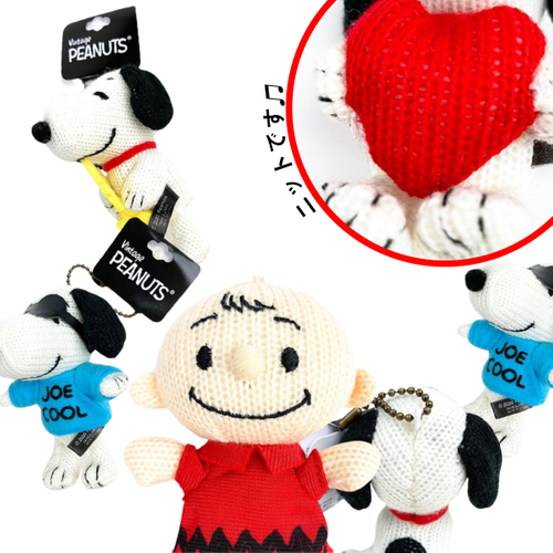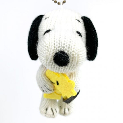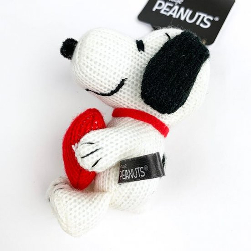 ウッドストックを大事そうに抱っこしているのが、手のポーズからも伝わりますね♪フェルト素材や布素材のマスコットはよく見かけますが、ニット素材はちょっと珍しいですよね~。