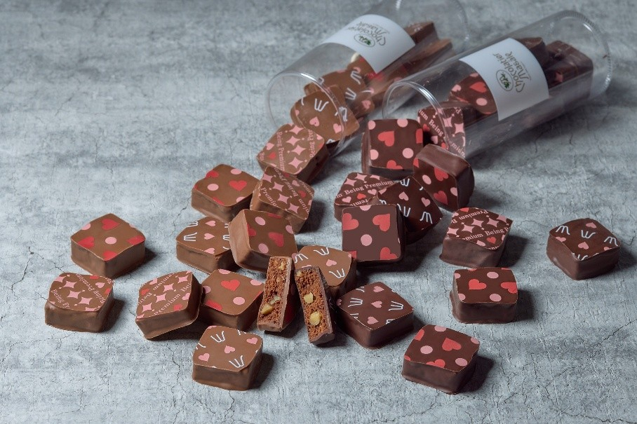 クルミたっぷりのブラウニーを二度焼きして「カリッサクッ」とした食感に仕上げ、オリジナルチョコレートでコーティングしました。ノワールとラクテの2種類をご用意。華やかなバレンタイン限定デザイン。※サロン・ドゥ・ショコラ2026 伊勢丹新宿のオンラインショップで即日完売した商品です。