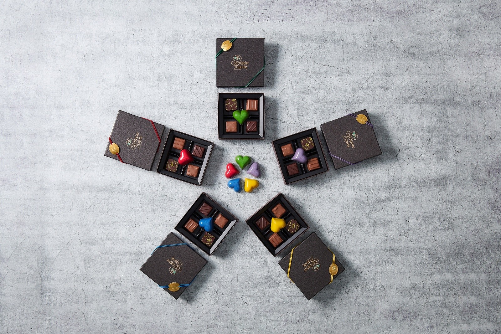 今年のボンボンショコラセレクションシリーズは、5色のハートをキーカラーに展開しました。 5色それぞれのフレーバーをお楽しみください。