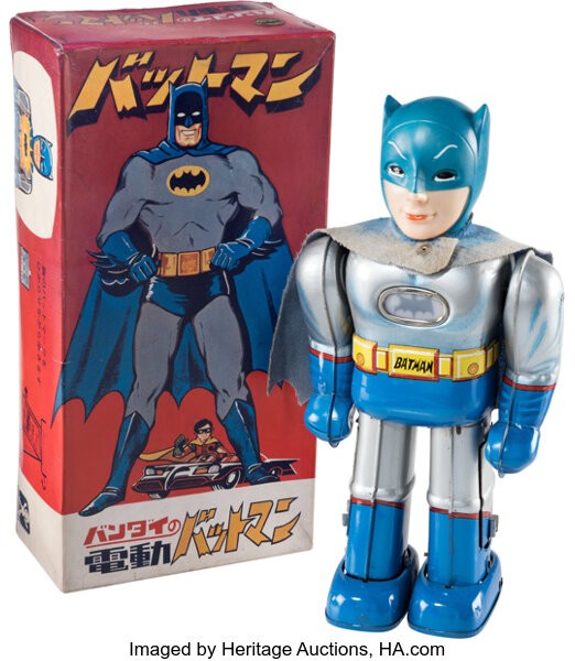 「バットマン」バッテリー駆動ロボット 元箱付き (バンダイ, 1960年代) 落札価格:42,500ドル(約612万円)
