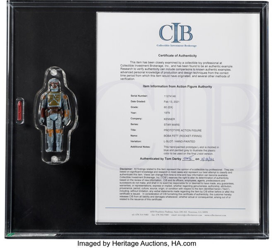 「スター・ウォーズ」ボバ・フェット プロトタイプ AFA 60 (ケナー, 1979年) 落札価格:525,000ドル(約7,823万円)