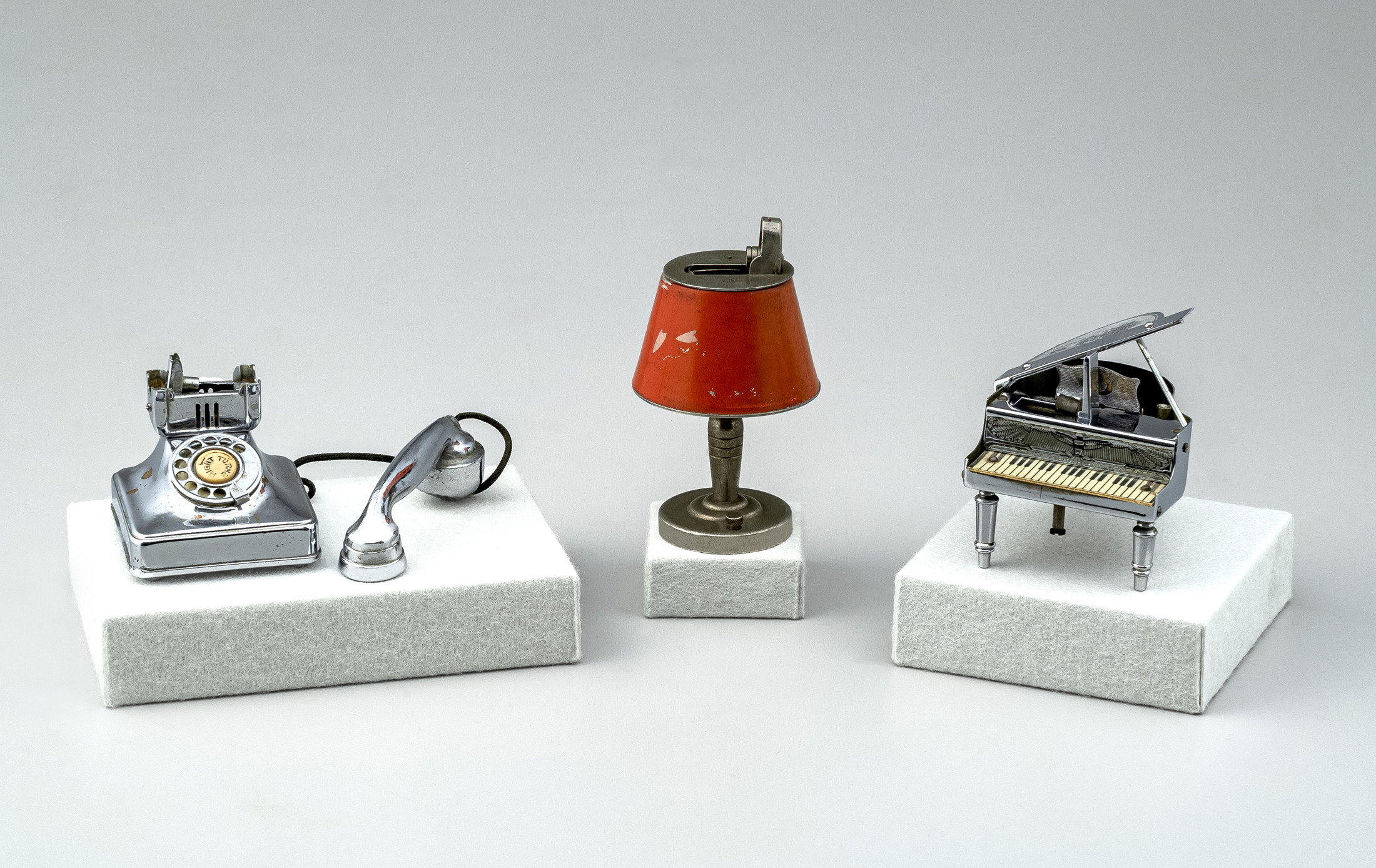 本展では、館蔵資料の中から、ライターの前身である様々な着火具をはじめ、ダンヒル、ロンソン、エバンスなどのメーカーが手がけた銘品や、ユニークな造形のテーブルライターなど約200点を展示します。さらに、戦後間もない時期の国産オイルライターを展示し、当館の所在地とも馴染み深い隅田川周辺地域の地場産業でもあったライター産業のあゆみを紹介します。