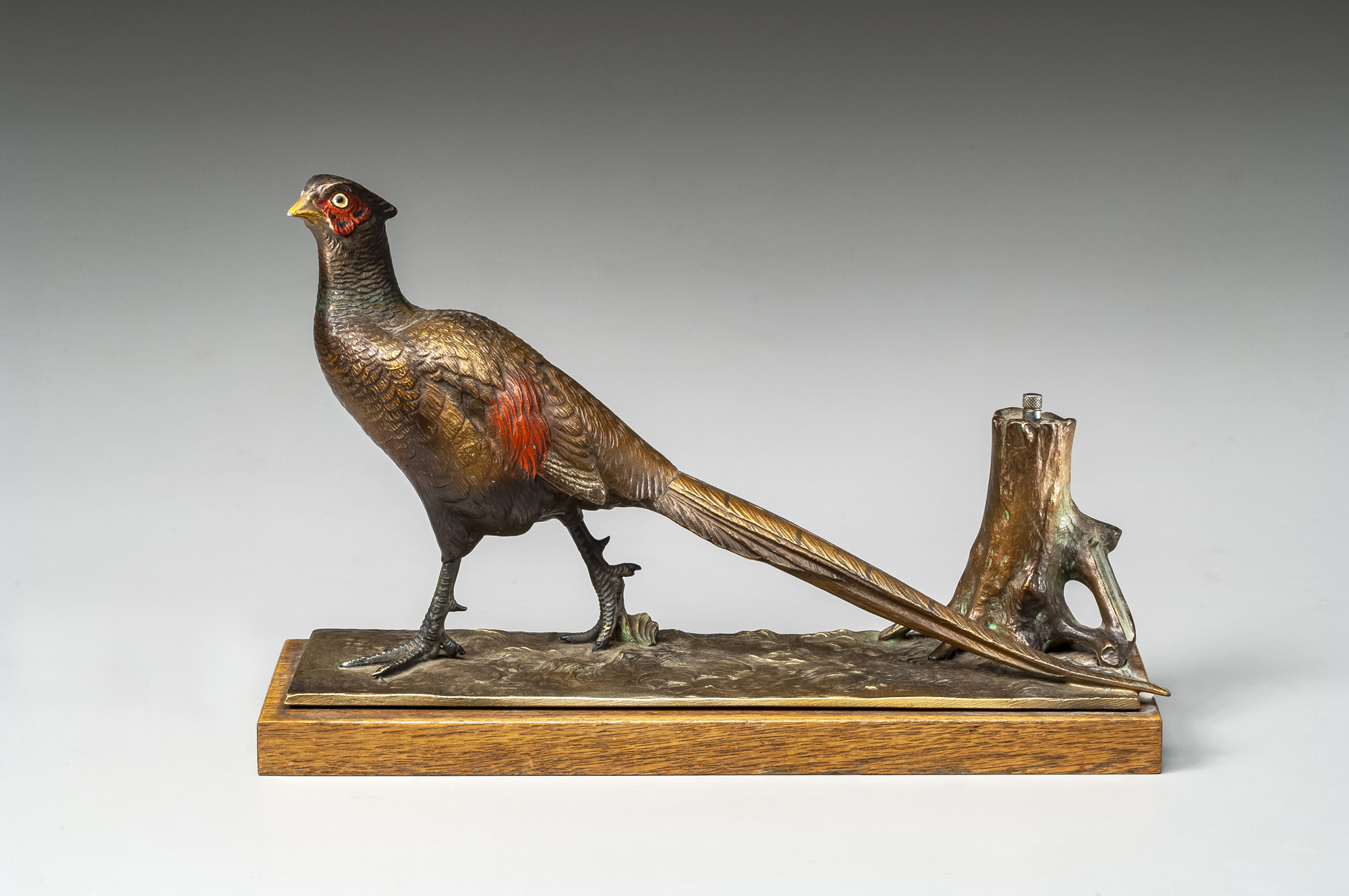 金工品メーカーで、元はブックエンドや置き時計なども手がけていた。メタリックな質感を活かした装飾が見どころ。